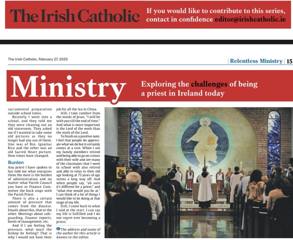 A member recommended this article from the Irish Catholic series Relentless Ministry, first published 27 Feb 2025.