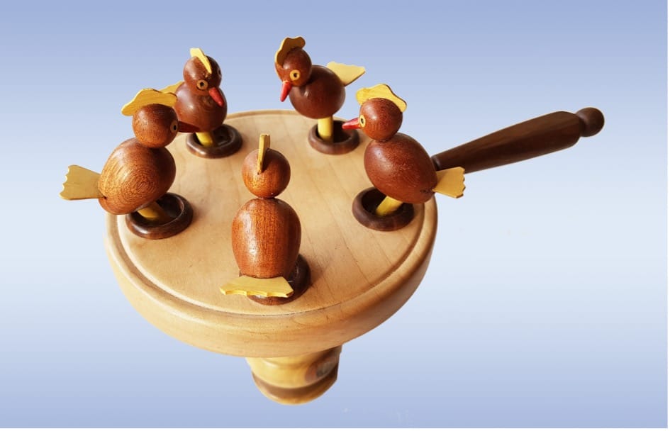 The photo shows a replica of an old Victorian toy. Versions of these are still being made and are often for sale in craft shops. It is a very dynamic piece where the five chickens are all connected by strings underneath to a ball that moves at the will of the person holding the handle. As the handle is moved, all sorts of amusing interactions between the five chickens take place; one can be made to stand aloof while another is made to look greedy and so on. As such they can represent the pecking order in our family of origin that tends to replicate itself in later life. The one who had no voice may continue to be silent; the controller remains in control; the scapegoat continues to feel blamed for everything. We carry the complex interactions and roles adopted in earlier life into adult life and, until we consciously master them, we will be unconsciously forced to repeat them. Some of these could include, being the responsible one; being the carer; being the fixer; the intellectual one who stands aloof or the scapegoat who can never get anything right, and who gets blamed for everything.