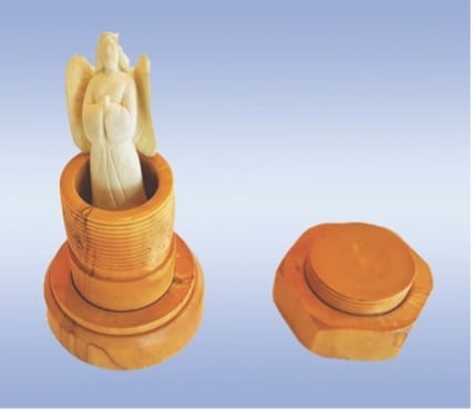 Lockdown is a term we became very familiar with during the Covid pandemic. Yet its practice always was and always will be happening. What initially appears to be just a nut and bolt made of wood, when unscrewed reveals a hidden surprise. The bolt is also a box that contains a little angel that has some unusual properties. If placed in a glass of water it will, over a few days, expand to almost fill the space it is given. This carries a profound symbolic message in relation to all the issues that we so easily put into lockdown: the rejections and betrayals; the hurts and disappointments; childhood memories and adult disasters. So many of these get put out of sight and are repressed in the cellar of the unconscious. We think that once out of sight they are safe while in fact they begin to wage a guerrilla war against us and sabotage our lives in myriad ways. If opened up with courage, that painful emotion or difficult issue begins to take on the characteristic of the angel. It becomes a benign influence and spreads its wings of blessing into every area of our lives. It is from our wounds, to which we have brought healing, that the greatest blessings flow.