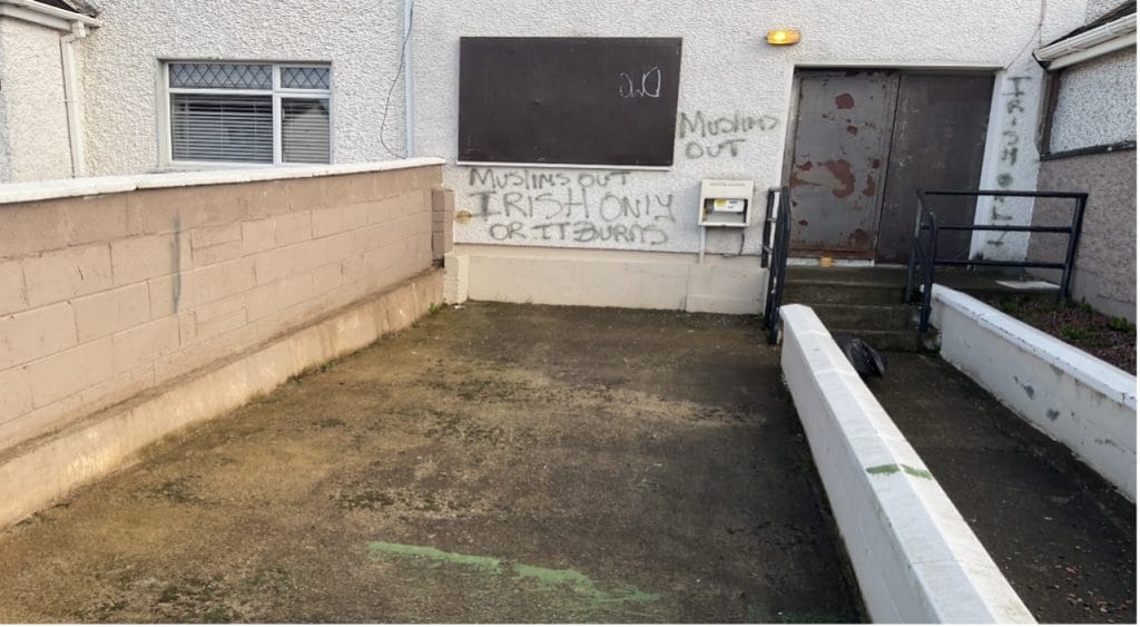 The Flags have become a problem in the UK. They are a statement of nationalism but also a protest for exclusion. We have spent months here talking to the local politicians, asking them to do something about the Flags flying around here. Again these Flags aren’t a Céad Míle Fáilte or a declaration of respect and reverence for the history of our country, but rather a protest  for making Ireland a land for the Irish only. Some Politicians have tried to do something, but no one seems willing to take down the Flags. It is very sad. But what is even worse is that when a house becomes vacant, these become defaced with the crudity of exclusion of any one who is not Irish. And then much more; they are threatened to be burned out. An example is the house across the road from me. I am ashamed and embarrassed.