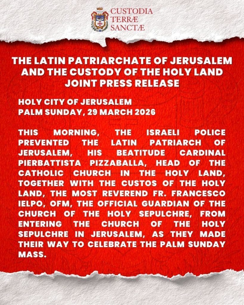 Israeli police stop Latin Patriarch from entering Church of Holy Sepulchre